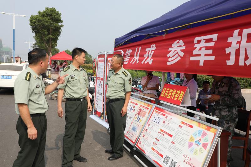高考期間,淮陽區(qū)人武部在轄區(qū)6個考場所在學(xué)校門口設(shè)立征兵宣傳站,向考生和家長進(jìn)行見縫插針式的征兵宣傳。宣傳現(xiàn)場,“參軍報國盡義務(wù),熱血青年競風(fēng)采”“當(dāng)兵最光榮、軍人最美麗”等宣傳標(biāo)語格外引人注目,內(nèi)容豐富的征兵宣傳展板一字排開,《參軍入伍明白卡》《大學(xué)新生應(yīng)征入伍宣傳單》等征兵宣傳資料擺放在咨詢臺上一目了然,吸引了眾多的考生和家長駐足觀看,圍著咨詢臺詢問有關(guān)征兵事宜。