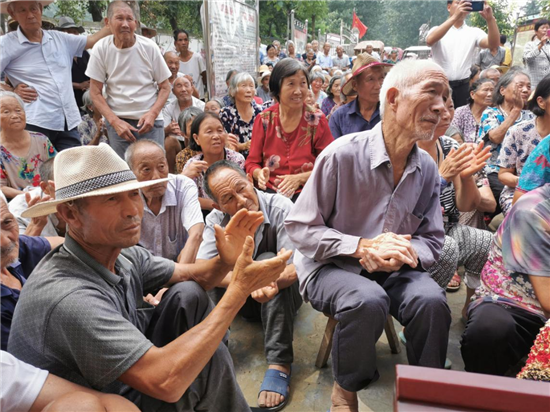 發(fā)放儀式開始后,村干部負(fù)責(zé)發(fā)放,老人們有序領(lǐng)取,個(gè)個(gè)興高采烈,歡笑聲響徹在邵廟村的上空……