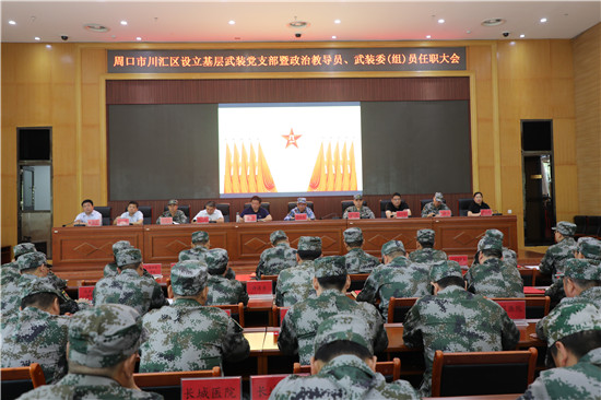 黨管武裝建設(shè)國防,軍民攜手共筑長城。為健全武裝工作組織領(lǐng)導(dǎo)體系為推動國防動員和后備力量建設(shè)在基層末端落實,7月16日上午,周口市川匯區(qū)召開基層武裝黨支部暨政治教導(dǎo)員、武裝委(組)員任職大會。周口軍分區(qū)司令員湯維政,區(qū)委書記、區(qū)人武部黨委第一書記李宗喜,市委組織部處級干部宋陽,區(qū)人武部政委高新傳、部長陳繼芳及城鄉(xiāng)一體化示示范區(qū)、經(jīng)濟開發(fā)區(qū)、港口物流產(chǎn)業(yè)聚集區(qū)等有關(guān)負(fù)責(zé)同志參加了大會。會上設(shè)立了18個基層武裝黨支部,任命了15名基層武裝部政治教導(dǎo)員、20名村(社區(qū))武裝委(組)員任職命令,武裝部政治教導(dǎo)員、武裝預(yù)建黨支部書記和兼職武裝委(組)員代表先后作了履職承諾發(fā)言,湯維政等為新任命的人員頒發(fā)了任職證書。