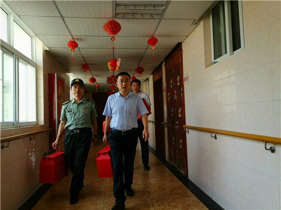走進(jìn)位于太昊路上的周口市老年護(hù)理院,院內(nèi)整潔有序、花蕊吐香鳥鳴聲聲,小徑通幽處的涼亭內(nèi)三五老人打牌、聊天,一副愜意安詳?shù)纳顖鼍啊T诤顕I(lǐng)母親王玉勤居住的房間內(nèi),李揚(yáng)、孫光濤等人坐在床邊與她聊天談心,看到這么多人來慰問她,王玉勤眼中流下了感動(dòng)的眼淚,她對慰問人員表示感謝,說自己來護(hù)理院近一年來,吃住條件都不錯(cuò),護(hù)理院照顧的無微不至,身體一天天恢復(fù),閑暇時(shí)還能不依賴輪椅自己走上一段路。她激動(dòng)地說:“感謝黨和政府的親切關(guān)懷,我最大的愿望是希望倆兒子永遠(yuǎn)聽黨的話,在部隊(duì)安心服役、再立新功,用優(yōu)異的成績回報(bào)黨和政府對我們?nèi)业年P(guān)愛?!?/p>
