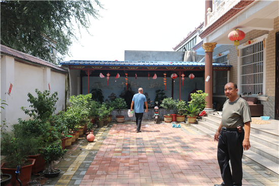 “整治后的坑塘邊綠村成蔭,不時(shí)有小鳥(niǎo)掠過(guò)水面又飛回樹(shù)梢;村頭巷尾、花開(kāi)四季,孩童們?cè)诖逯凶分疰音[,老人們?cè)诖宓郎镶蛔缘玫蒯溽嗌⒉剑瑲g笑不斷;群眾文化廣場(chǎng)上,村民集聚在這里休閑、娛樂(lè)、健身,成了村里人氣最旺的地方。”另一個(gè)具有代表性的鄉(xiāng)村振興新版本是馬鋪鎮(zhèn)最南端軍吳行政村,這個(gè)村子位于惠濟(jì)河北岸,207省道橫穿南北,轄軍吳,高口,高莊,吳樓,許莊,王莊,豆腐營(yíng)七個(gè)自然村,耕地面積4288畝,總?cè)丝跀?shù)4236人。近年來(lái),這個(gè)村子除大力發(fā)展中藥材、蔬菜等經(jīng)濟(jì)作物種植外,還以“二四四”工程和“雙強(qiáng)”村創(chuàng)建為抓手,開(kāi)展“美麗鄉(xiāng)村”行動(dòng),打造美麗庭院,對(duì)村中主次道路進(jìn)行硬化、綠化、美化、亮化,發(fā)展以生態(tài)為底色的宜居宜游農(nóng)旅村落,成為鹿邑縣首批“千萬(wàn)工程”示范村。