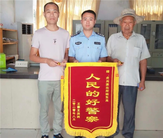 “沒想到,真沒想到,我這輩子還能與兒子相見,太感謝你了?!弊蛉?,鄲城縣虎崗鄉(xiāng)派出所戶籍室門口鞭炮齊鳴,該鄉(xiāng)王寨行政村75歲的貧困戶王洪周和兒子王鐵練及親屬向戶籍民警姚東亮送上錦旗后,感激之情溢于言表。