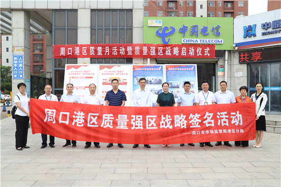 9月21日上午,周口市市場監(jiān)管局港區(qū)分局在轄區(qū)港城小區(qū)舉辦周口港區(qū)質(zhì)量月活動暨質(zhì)量強區(qū)戰(zhàn)略啟動儀式。周口市市場監(jiān)管局二級調(diào)研員趙學軍、港區(qū)管委會副調(diào)研員李素芹參加儀式并講話。