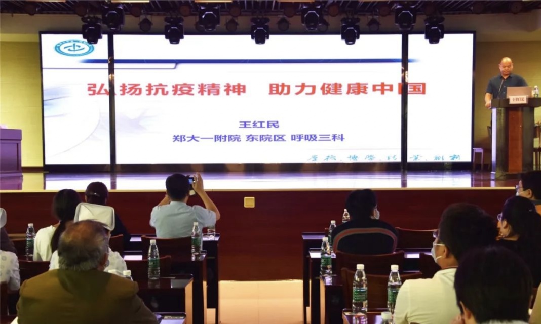 王紅民教授曾經(jīng)參加河南省援鄂醫(yī)療隊(duì),他給大家分享了在武漢第一家方艙醫(yī)院——江漢方艙醫(yī)院工作時(shí)的抗疫故事,當(dāng)王教授說(shuō)起援鄂醫(yī)療隊(duì)“疫情不退,絕不言歸”的口號(hào)時(shí),臺(tái)下響起雷鳴般的掌聲。
