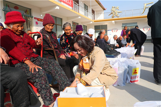 10月23日,在一年一度的重陽節(jié)即將到來之際,市人大代表薛華杰、楊輝等組團(tuán)來到太康縣城郊鄉(xiāng)王東月居村聯(lián)養(yǎng)點(diǎn),給這里的特困老人每人送去一雙愛心鞋,讓老人感受到了“有兒有女”的快樂。