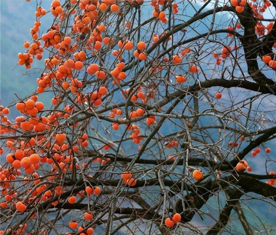 周口道路旁碩果累累的柿子樹