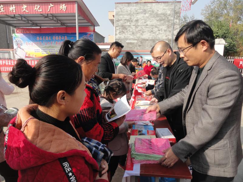 為紀(jì)念《反間諜法》頒布實(shí)施6周年,商水縣委政法委、縣委國安辦等單位聯(lián)合開展普法教育進(jìn)鄉(xiāng)村活動(dòng),通過發(fā)放宣傳資料、展示宣傳版面、現(xiàn)場講解等形式對群眾進(jìn)行國安教育和法治教育。圖為11月1日,工作人員在活動(dòng)現(xiàn)場向村民發(fā)放宣傳資料。