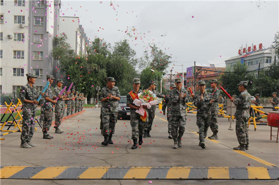 每周考核在所選兩個(gè)科目中始終拔得頭籌,他覺得這次一定會(huì)在比武中取得名次,但天公不作美,臨近比武的幾天,天降大雪,比武取消,聽到這個(gè)消息,張潔心情很失落,覺得又一次證明自己的機(jī)會(huì)消失了,恰逢中士滿服役期, 在這個(gè)人生十字路口上,他想了很多也有過彷徨, 經(jīng)過激烈的思想斗爭,張潔覺得在軍旅生涯中自己雖然非常努力,但仍有很多遺憾,于是他申請留隊(duì)再拼搏,不能給自己的軍旅生涯留下遺憾。