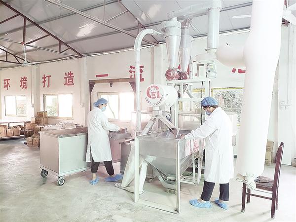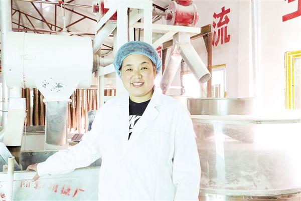 喜俊喜家庭農(nóng)場(chǎng)總經(jīng)理王春麗在黑小麥面粉生產(chǎn)車(chē)間。