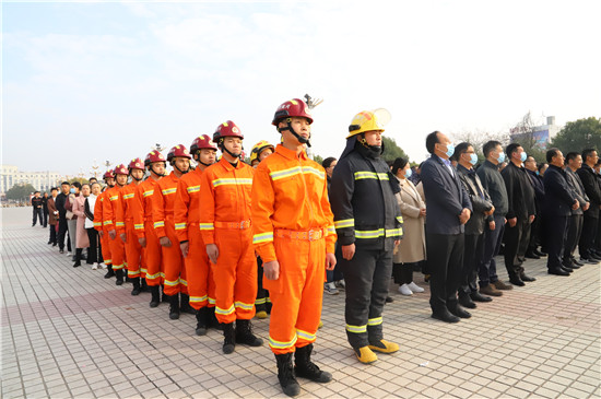 11月11日,鄲城縣在世紀廣場舉行2020年消防宣傳月活動啟動儀式,目的是進一步提高全民消防安全意識,促使“關(guān)注消防 生命至上”的主題深入人心,廣泛發(fā)動社會各界關(guān)注消防、參與消防,營造良好的宣傳氛圍,預(yù)防和減少火災(zāi)事故發(fā)生,確保人民群眾生命財產(chǎn)安全??h長李全林出席會議并宣布消防宣傳月活動啟動,縣委常委、常務(wù)副縣長胡友濤主持會議,縣領(lǐng)導謝超、王彪、陳鳳祥、李素梅及縣公安局政委趙紅建參加會議。