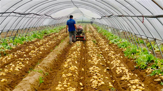試點村宋崗、王村率先嘗試鋼架拱棚種植,春季在棚內(nèi)種植土豆,夏季養(yǎng)殖豆蟲,秋季種植糯玉米、水果玉米、小尖椒、有機花菜等,“三季連作”,立體化種植。當年,這兩個村的群眾收成喜人,收入翻番。