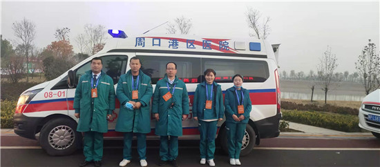 為了全力保障賽事安全、順利進行,比賽現(xiàn)場沿途設(shè)置了醫(yī)療救護點,為賽事保駕護航。周口港區(qū)醫(yī)院作為市衛(wèi)健委120指揮中心指定的賽事保障單位,由業(yè)務(wù)副院長高山親自帶領(lǐng)急診科精干力量參與賽事醫(yī)療保障,圓滿完成任務(wù)。賽后得到了主辦方和市衛(wèi)健委的通報表揚。