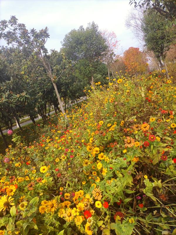 初冬時節(jié),雨后初晴,周口市區(qū)的一片小雛菊分外嬌艷,姹紫嫣紅的鮮花如同一片彩色的走廊,讓人不禁駐足欣賞。