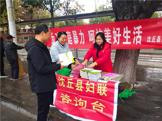 11月25日是國際反家庭暴力日。為進(jìn)一步提高全社會(huì)反家庭暴力意識,加大對《反家庭暴力法》的宣傳,有效預(yù)防和制止家庭暴力,促進(jìn)家庭和諧,保障婦女群眾在婚姻家庭中的合法權(quán)益。為此,沈丘縣婦聯(lián)在城區(qū)組織開展了以“反對家庭暴力,呵護(hù)美好生活”為主題的法治宣傳活動(dòng)。