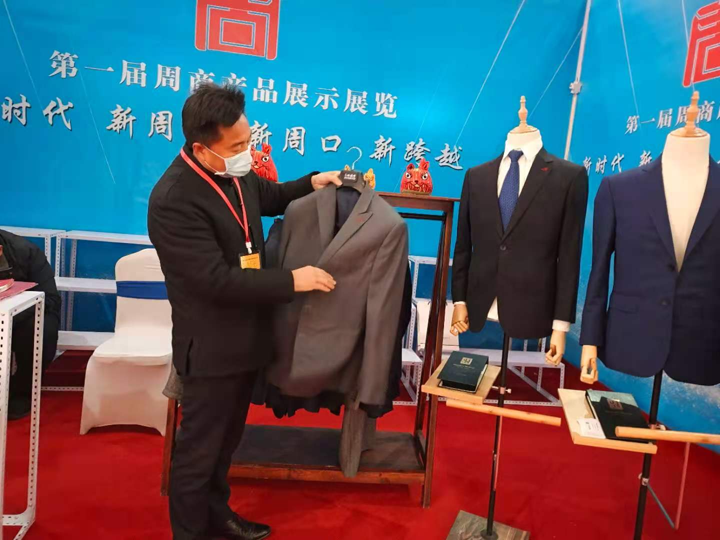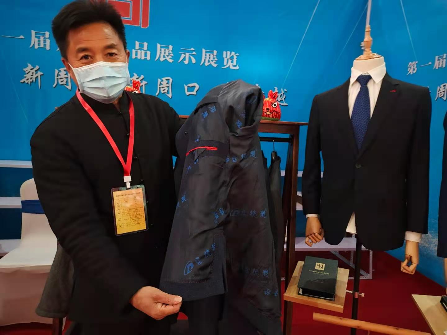量身定制,做工考究,一件件手工制作的西服讓不少人重新認識服裝的制作過程。在周商大會開幕當天,記者見到了淮陽縣第十三屆政協常委、非物質文化遺產淮陽布老虎傳承人、淮陽縣工藝美術協會副主席雷智超。本次大會,他不僅帶來了呆萌的布老虎,還帶來了以自己名字命名的手工西服。制作精良的手工西服像極了一件件藝術品,吸引了不少人咨詢。