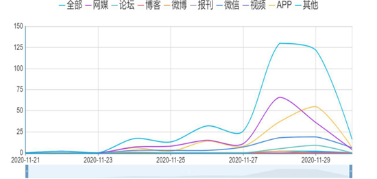 11月21日0:00至11月30日11::00,周口報(bào)業(yè)傳媒集團(tuán)大數(shù)據(jù)中心監(jiān)測(cè)到的數(shù)據(jù)顯示,