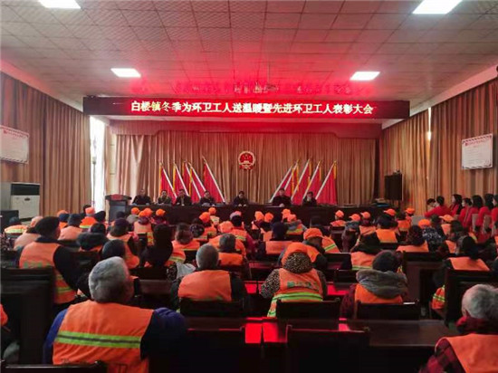 12月6日,白樓鎮(zhèn)召開冬季為環(huán)衛(wèi)工人送溫暖暨先進環(huán)衛(wèi)工人表彰大會,114名環(huán)衛(wèi)工人收到暖心的棉衣。