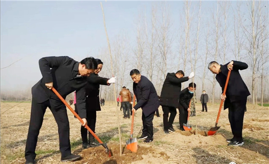 在西華縣國有林場植樹現(xiàn)場,縣領(lǐng)導(dǎo)與參加義務(wù)植樹活動的干部職工、志愿者們一起揮锨鏟土、植樹播綠,有的扶苗固根、有的揮鍬填土、有的踩緊壓實,分工合作,齊心協(xié)力,呈現(xiàn)出一派熱鬧非凡的勞動景象。經(jīng)過一上午辛勤勞動,3000多棵新栽植樹苗迎風而立,形成一道生機盎然的風景線。
