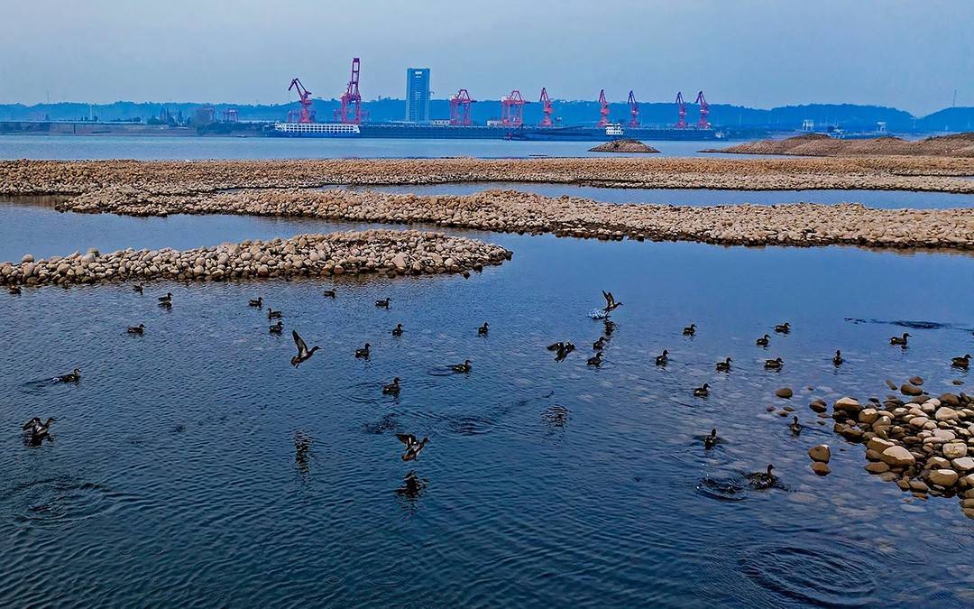 枯水期長(zhǎng)江宜都段灘涂成鳥(niǎo)類(lèi)樂(lè)園。