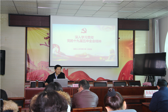 “黨的十九屆五中全會是在我國將進(jìn)入新發(fā)展階段、實現(xiàn)中華民族偉大復(fù)興正處于關(guān)鍵時期召開的一次具有全局性、歷史性意義的會議。”12月19日,扶溝縣審計局召開學(xué)習(xí)貫徹十九屆五中全會精神宣講大會,由局黨組書記翟連生作宣講報告,該局全體干部職工共40余人參加了宣講會。