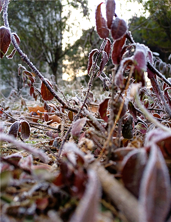 有詩云:“早寒青女至,零露結(jié)為霜。入夜飛清景,凌晨積素光?!?月6日,清晨時(shí)分,我市中心城區(qū)一層層雪白的霜花凝結(jié)在花草樹木等植物上,晶瑩剔透,令人驚艷,尤其在晨光的映照下,滿目的霜花就像一層銀光,把世界裝點(diǎn)得格外美麗。③2
