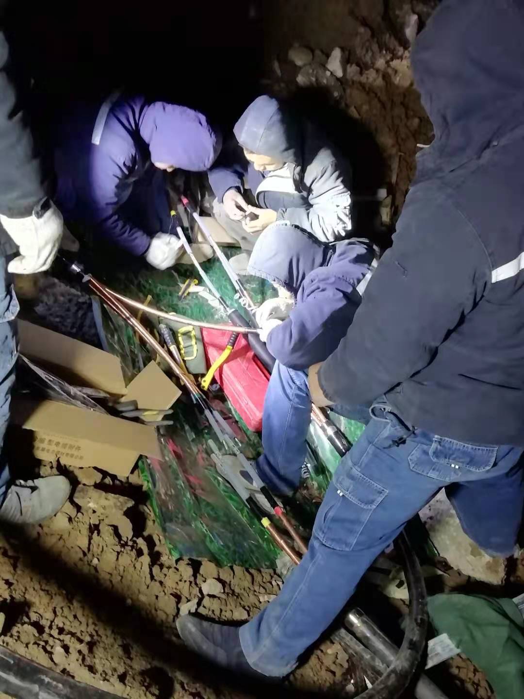 據(jù)介紹,1月14日14時許,該處因施工造成電力電纜破壞,蓮花路中段大面積停電, 國網(wǎng)周口供電公司搶修人員在接到消息后立即進行搶修,于當晚恢復正常供電。1月15日 18時許,該處相隔不遠的10千伏富7板蓮花路線遭到破壞,導致附近950余戶用戶停電。 接到搶修任務后,國網(wǎng)周口供電公司組織搶修車輛、搶修人員及時到達現(xiàn)場,因地下污 水管道同時遭到破壞斷裂,電纜被泡在污水池內,搶修工作受到影響。在克服夜間作業(yè) 光線差、難度大等問題后,搶修人員經(jīng)多方努力于1月16日凌晨對停電影響用戶恢復供電 。