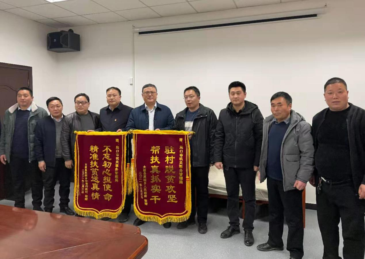 本報(bào)訊(記者 竇娜)2月4日,市機(jī)關(guān)事務(wù)管理局迎來了一批特殊的客人,該局對(duì)口幫扶村——太康縣高朗鄉(xiāng)中黃村黨支部書記黃東體和群眾代表,送來了兩面寫有“不忘初心擔(dān)使命,精準(zhǔn)扶貧送真情”和“駐村脫貧攻堅(jiān),幫扶真抓實(shí)干”的錦旗,感謝市機(jī)關(guān)事務(wù)管理局在幫扶工作中對(duì)該村的大力支持和真情關(guān)懷。