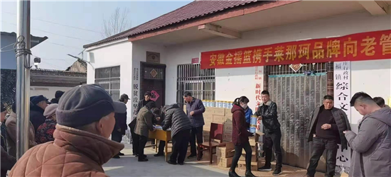 “這是在安徽金搖藍(lán)公司工作的老官莊村人王北領(lǐng)、王建立攜手萊那珂奶粉企業(yè)慰問鄉(xiāng)親們吶!”武金英老人一臉幸福。據(jù)悉,這次慰問的對(duì)象是老官莊貧困戶、60歲以上老人及困難群眾,慰問捐贈(zèng)的禮品為奶粉240桶,價(jià)值十萬余元。同時(shí),老官莊新當(dāng)選地村黨支部書記王杰華也出資5000元,為村里的60歲以上老人及困難群眾購買大米120袋,用行動(dòng)為老官莊老人送去節(jié)日的祝福。