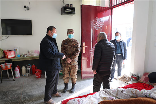 新橋鎮(zhèn)新兵楊凱入伍前和癱瘓的父親相依為命,市人武部領(lǐng)導(dǎo)協(xié)調(diào)地方政府,把其父親送到了新橋鎮(zhèn)敬老院公費養(yǎng)老,解除他的后顧之憂。春節(jié)到了,人武部領(lǐng)導(dǎo)還牽掛著這個特困家庭,矯百成帶隊來到新橋鎮(zhèn)敬老院。此時正值中午,楊凱的父親正坐在屋外的輪椅上曬太陽,見到矯部長的突然到來,激動的眼含熱淚,他緊緊握住矯百成的手久久不愿松開。矯百成噓寒問暖,給他送上1000元慰問金和生活必需品,楊凱的父親用他那不太清晰的語言表達對部長的真誠感謝。在敬老院院長的帶領(lǐng)下,矯百成又來到老人的住室察看起居情況,詢問他平時生活狀況,當?shù)弥先松畹暮苁娣r,矯百成滿意的笑了。