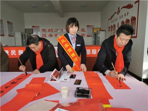 牛年春來早,農(nóng)家喜事多。2月7日,陽光明媚,春光普照。沈丘縣農(nóng)商銀行組織省市書協(xié)著名書法家來到沈丘縣白集鎮(zhèn)田營村, 為村民義寫春聯(lián)。