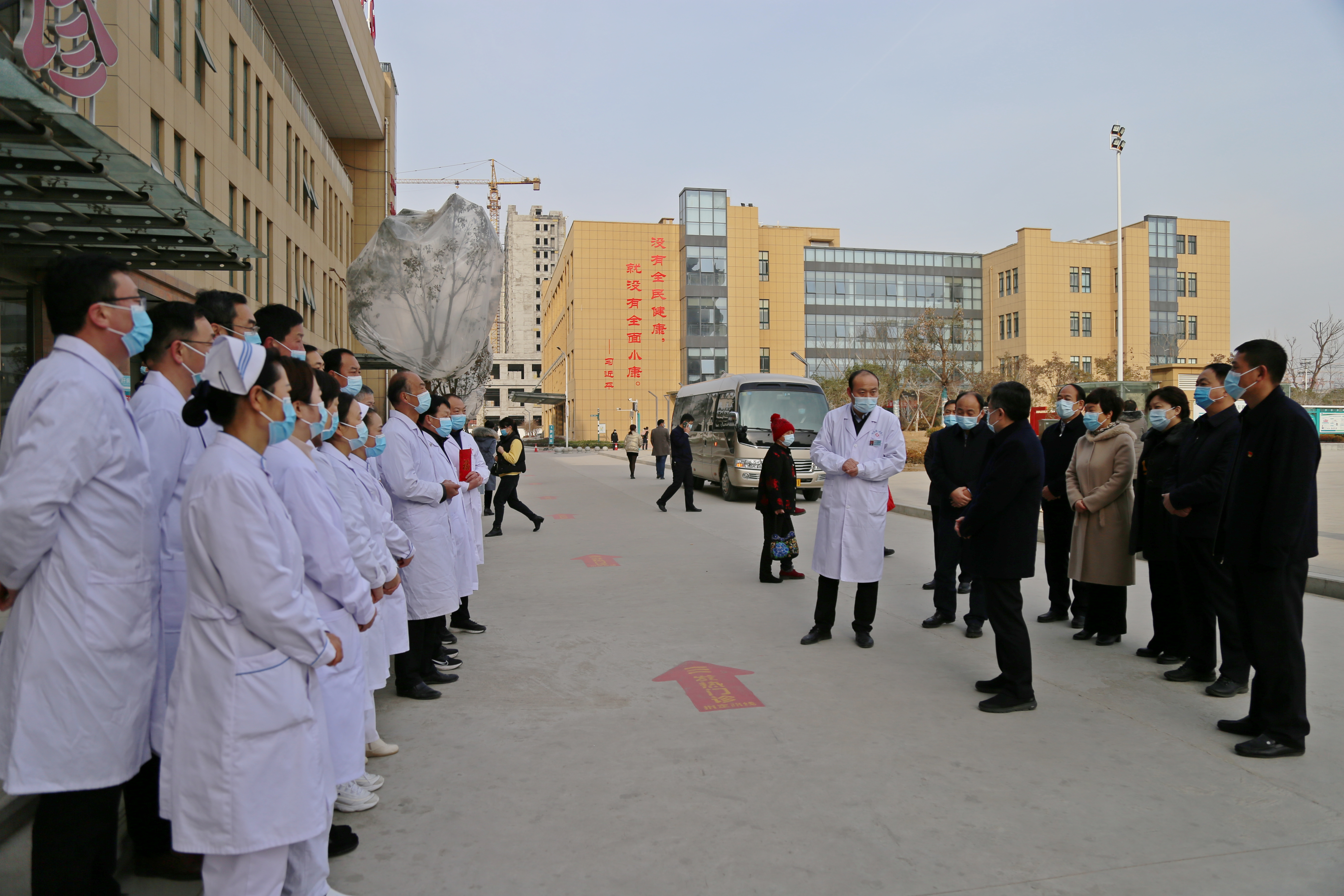 白衣執(zhí)甲、逆行出征。在縣人民醫(yī)院,皇甫立新、劉國慶代表縣四個班子和全縣人民向堅(jiān)守在一線的醫(yī)護(hù)人員表示衷心感謝并致以崇高敬意,祝大家新年快樂、闔家歡樂?;矢α⑿抡f,2020年,是極不平凡的一年,自新冠肺炎疫情發(fā)生以來,全縣廣大醫(yī)護(hù)人員舍小家顧大家,義無反顧的沖鋒在救治一線,不畏困難和危險,連續(xù)作戰(zhàn),為保障人民生命安全和身體健康作出了重要貢獻(xiàn)。希望全縣醫(yī)護(hù)人員繼續(xù)發(fā)揚(yáng)人道主義精神和救援精神,提高救治水平,扎實(shí)做好冬春季疫情防控工作,并再三叮囑一線醫(yī)務(wù)人員一定要合理安排時間,注意勞逸結(jié)合,做好自身防護(hù)。同時叮囑醫(yī)院負(fù)責(zé)人要做好醫(yī)護(hù)人員的后勤保障工作,確保大家無后顧之后,全身心投入到工作去中。