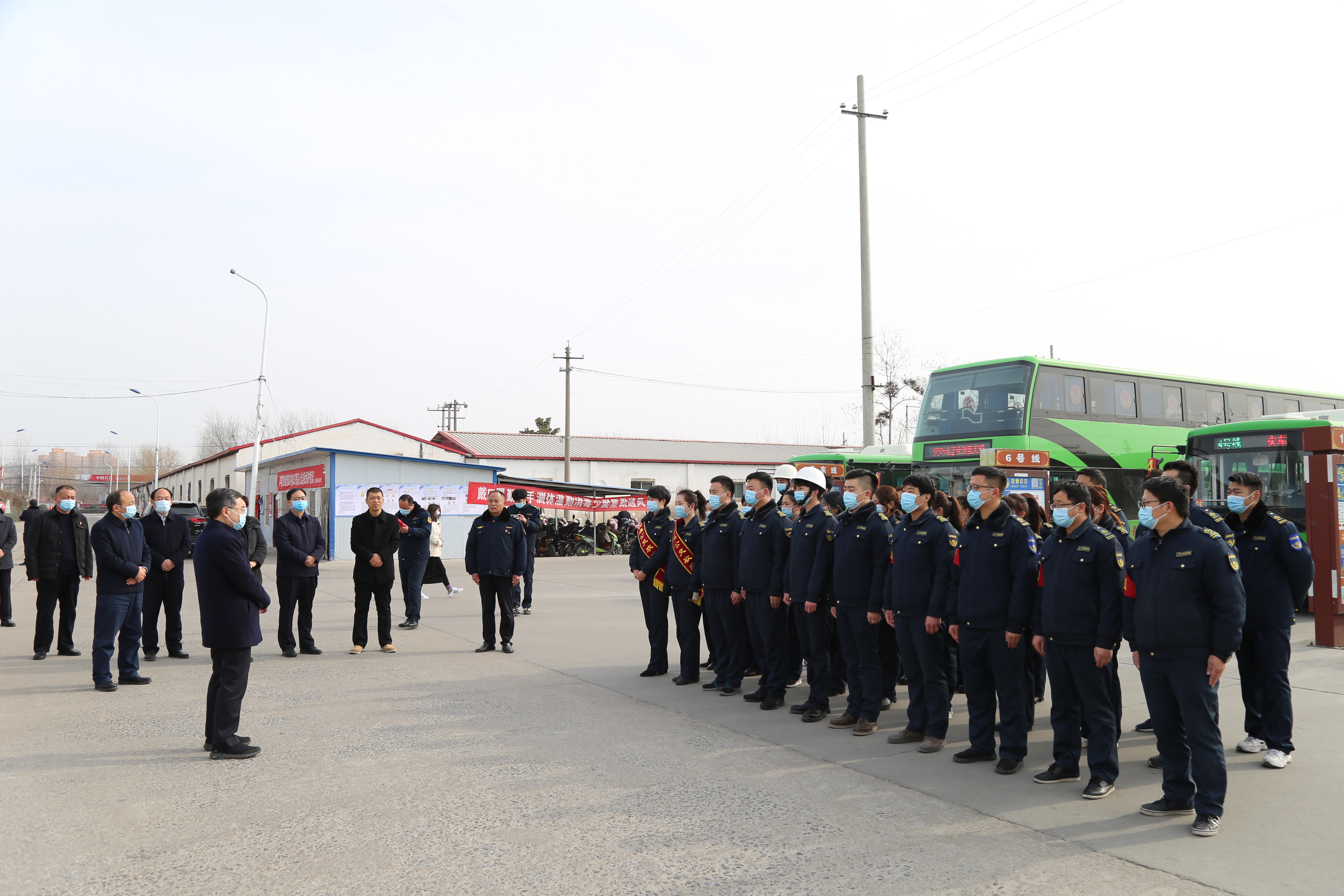 在縣公交公司,皇甫立新、劉國慶代表縣四個班子向堅(jiān)守在一線的干部職工和公交司機(jī)致以節(jié)日的問候,對他們長期以來為我縣交通事業(yè)做出的貢獻(xiàn)表示感謝,并祝大家新春快樂,闔家歡樂。在認(rèn)真聽取相關(guān)負(fù)責(zé)人關(guān)于春節(jié)期間車輛運(yùn)營和疫情防控等工作的匯報(bào)后,皇甫立新說,眼下,隨著春節(jié)臨近,人流量劇增,交通壓力和疫情防控壓力徒增,縣公交公司要繼續(xù)落實(shí)春節(jié)期間城區(qū)公交車免費(fèi)乘坐惠民政策,在嚴(yán)格落實(shí)疫情防控措施的基礎(chǔ)上,根據(jù)春節(jié)期間人流特點(diǎn),靈活調(diào)度車輛,合理安排各公交路線的車輛、臺數(shù)、營運(yùn)車次,統(tǒng)籌做好高鐵站、火車站、汽車站等運(yùn)輸點(diǎn)的接續(xù)接駁工作,優(yōu)化營運(yùn)時間和發(fā)車頻次,尤其是高鐵夜班車的統(tǒng)籌安排,確保乘客安全到家,不滯留一位乘客。同時希望堅(jiān)守崗位的公交職工要繼續(xù)提供優(yōu)質(zhì)服務(wù),文明安全駕駛,為全縣人民安全出行提供方便、搞好服務(wù)?;矢α⑿逻€叮囑公交公司負(fù)責(zé)人要合理安排好職工的工作和生活,為廣大一線工作人員安心工作提供堅(jiān)實(shí)的后勤保障,讓他們更加舒心愉快地服務(wù)廣大群眾。