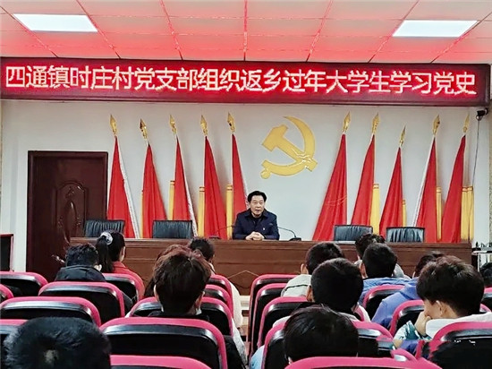 看展館、聽黨史、上黨課……2月18日,淮陽區(qū)四通鎮(zhèn)時莊村黨支部抓住該村大學生春節(jié)返鄉(xiāng)過年還未返校的有利時間,為返鄉(xiāng)大學生上好新年第一課,推動“不忘初心、牢記使命”主題教育不斷走寬、走深、走實,充分發(fā)揮基層黨組織黨支部的戰(zhàn)斗堡壘作用。