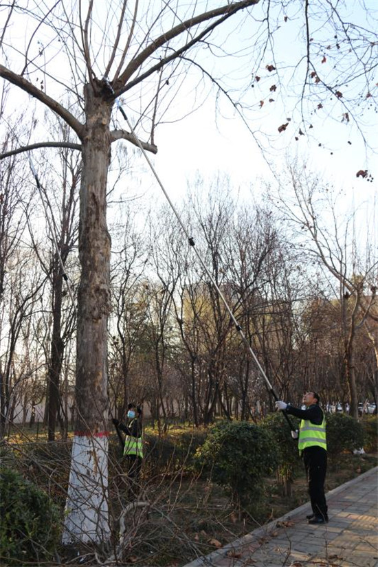 2月21日,城鄉(xiāng)一體化示范區(qū)城管局幾名市政管理人員在修剪周口大道兩旁的行道樹。據(jù)了解,通過一年的生長,行道樹衍生了許多無用枝條,如果對這些無用枝條不進行修剪,勢必影響今年的長勢。目前,道路兩邊的行道樹開始發(fā)芽,正是一年當中修剪的有利時機。城鄉(xiāng)一體化示范區(qū)城管局每天出動三班技術人員,對轄區(qū)內(nèi)的行道樹進行修剪。
