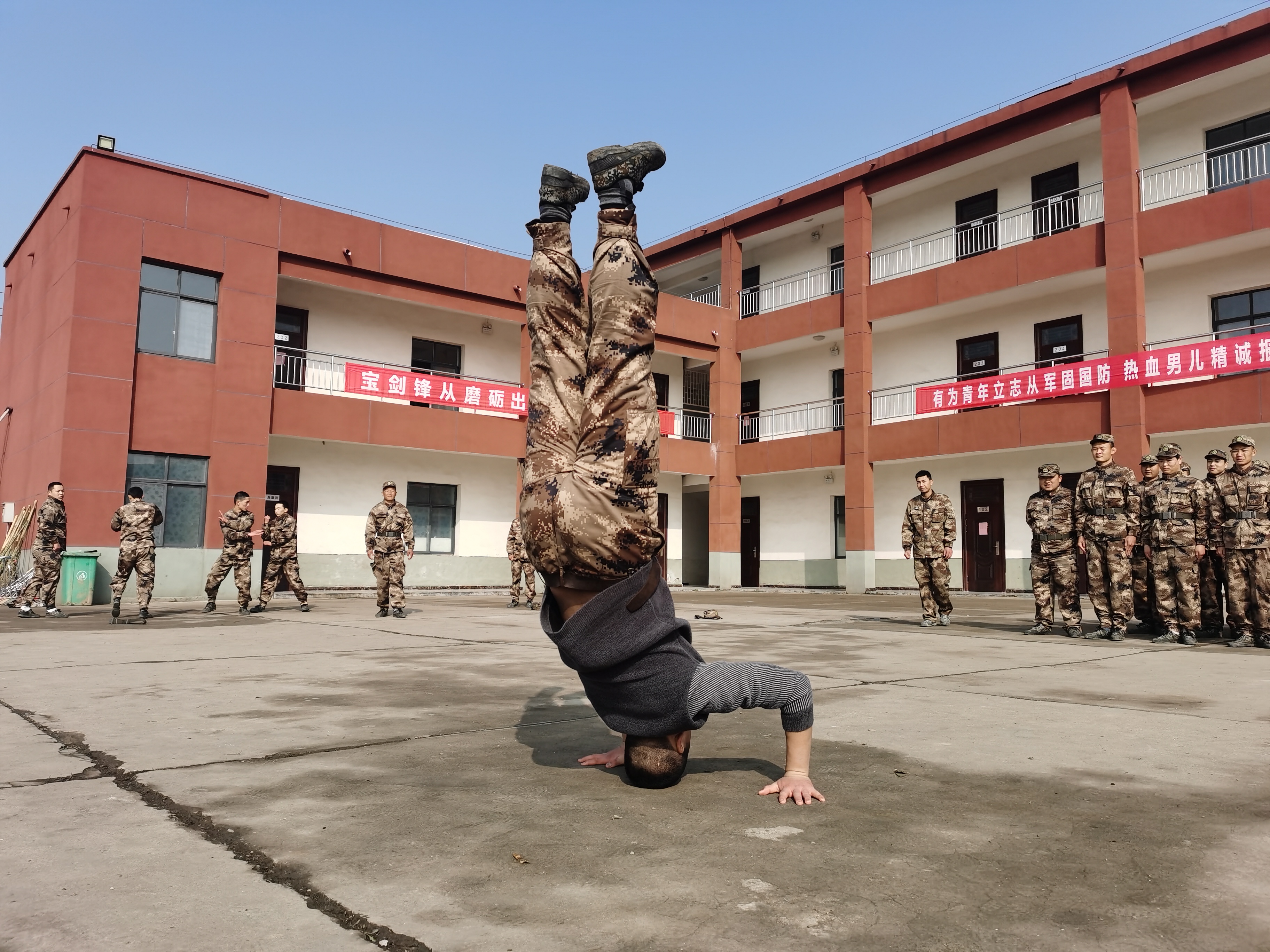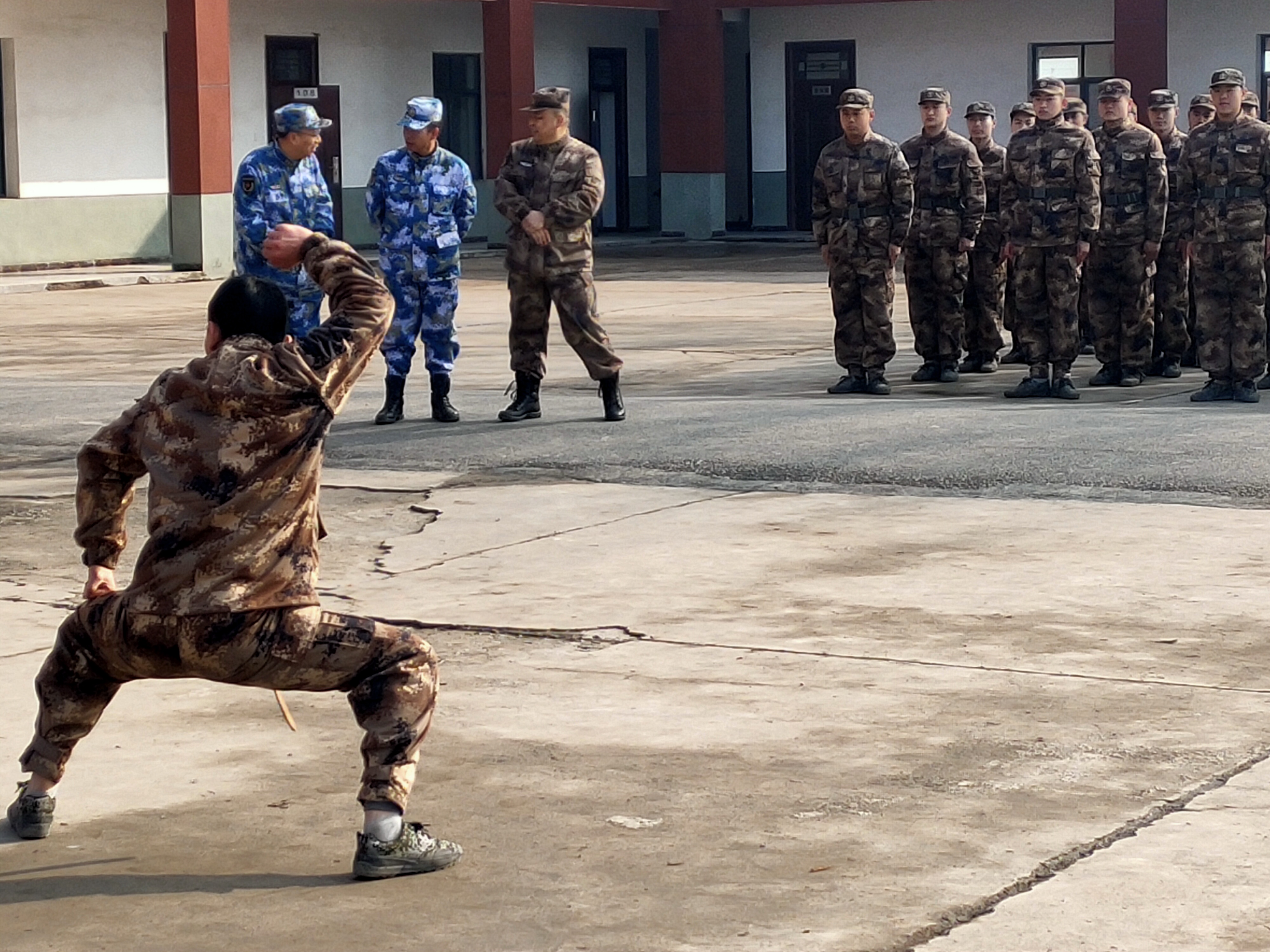 “報(bào)告首長,我叫趙三朋,畢業(yè)于武漢體育學(xué)院,武術(shù)套路、散打和兵器專業(yè)。”在戰(zhàn)友們的歡呼聲中,趙三朋主動請纓表演了一套傳統(tǒng)武術(shù)套路,只見他一招一式行云流水、虎虎生威 ,前后空翻嫻熟到位、收放自如,迎得戰(zhàn)友們陣陣喝彩聲,湯維政也禁不住連聲稱贊。