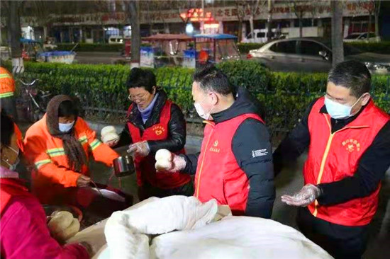 當(dāng)日早上5時(shí),在愛心粥屋里,示范區(qū)分局的志愿者們穿著紅馬甲,戴上口罩,立即進(jìn)入忙碌狀態(tài),大家既分工明確又相互配合,現(xiàn)場(chǎng)井然有序。他們?yōu)榄h(huán)衛(wèi)工人盛飯端菜,拿雞蛋饅頭,動(dòng)作迅速,熱情周到,有條不紊,個(gè)個(gè)忙得不亦樂乎。在這個(gè)清冷的早晨,因?yàn)橛辛藷釟怛v騰的飯菜和志愿者忙碌的身影,環(huán)衛(wèi)工人開心地笑容,感受到濃濃暖意。