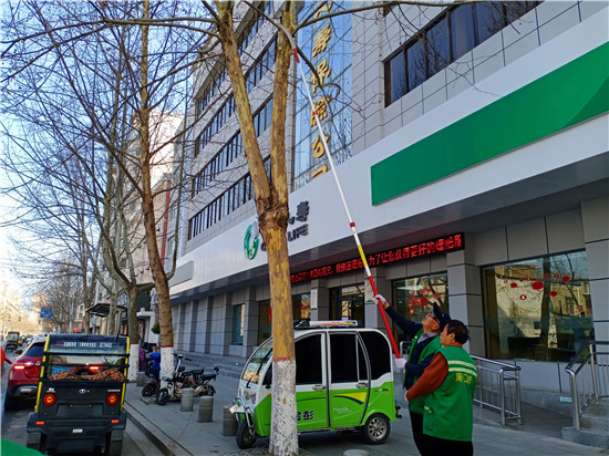 3月4日下午,在中心城區(qū)人民路上,園林工人正在對道路邊的綠化樹進行修剪,讓樹木保持良好的形狀和長勢。周口日報·周道客戶端記者 張洪濤 攝