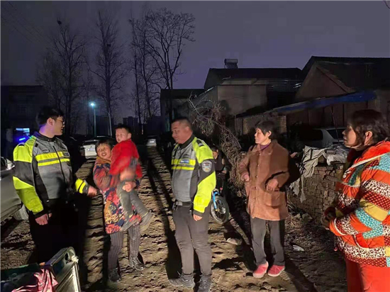 3月12日晚,鄲城縣交警大隊(duì)鐵騎中隊(duì)副中隊(duì)長(zhǎng)張?chǎng)沃蛋噙^程中發(fā)現(xiàn)一位迷路小孩,張新等人想方設(shè)法把孩子護(hù)送回家。