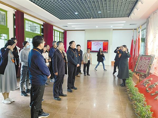 在紅安縣列寧小學(xué)舊址,周口報(bào)人在講解員的帶領(lǐng)下,學(xué)習(xí)了紅安兒女“一要三不要”“一圖兩不圖”的革命信念,“樸誠(chéng)勇毅、不勝不休”的紅安精神。在昔日的教室里,周口報(bào)人齊唱《八月桂花遍地開》,致敬紅安革命烈士不怕犧牲、勇于斗爭(zhēng),為新中國(guó)解放事業(yè)拋頭顱、灑熱血的大無(wú)畏精神。