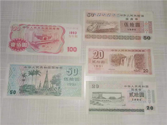 隨后,在四月上旬的一天,他抱著試試看的態(tài)度到人民銀行項(xiàng)城市支行公共金融服務(wù)大廳詢問該如何兌換。工作人員熱情地接待了他。但這些國(guó)庫(kù)券距今過久,該支行缺少辨別真?zhèn)蔚募夹g(shù)手段。工作人員為欒老出具收據(jù)后,將國(guó)庫(kù)券帶到人民銀行周口市中心支行進(jìn)行核驗(yàn)。當(dāng)日,人民銀行周口市中心支行確認(rèn)國(guó)庫(kù)券真實(shí)無(wú)誤,并認(rèn)真計(jì)算了應(yīng)付利息。欒老的國(guó)庫(kù)券共有1990年的面值50元的1張、20元的1張,1991年國(guó)庫(kù)券面值50元的1張、20元的1張,1993年國(guó)庫(kù)券面值100元的1張,合計(jì)本金240元。按照國(guó)家規(guī)定利率應(yīng)兌付本金與利息共計(jì)362.39元。