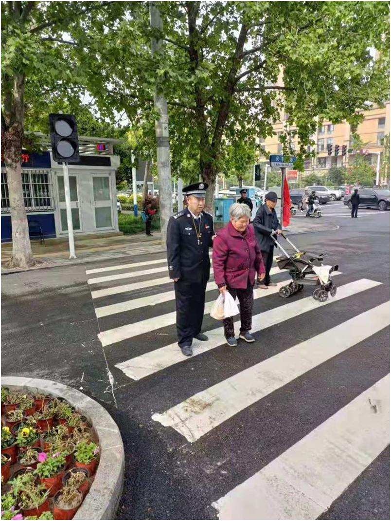4月25日下午,細(xì)雨霏霏,示范區(qū)公安分局黨委委員、副局長劉峰和執(zhí)勤民警楊勇按照要求,在慶豐路和中原路交叉口紅綠燈處執(zhí)勤時(shí),發(fā)現(xiàn)一位70多歲的老人步履蹣跚地往馬路對面走,由于步行速度較慢、紅綠燈時(shí)間短,她的步伐明顯有些不穩(wěn)。