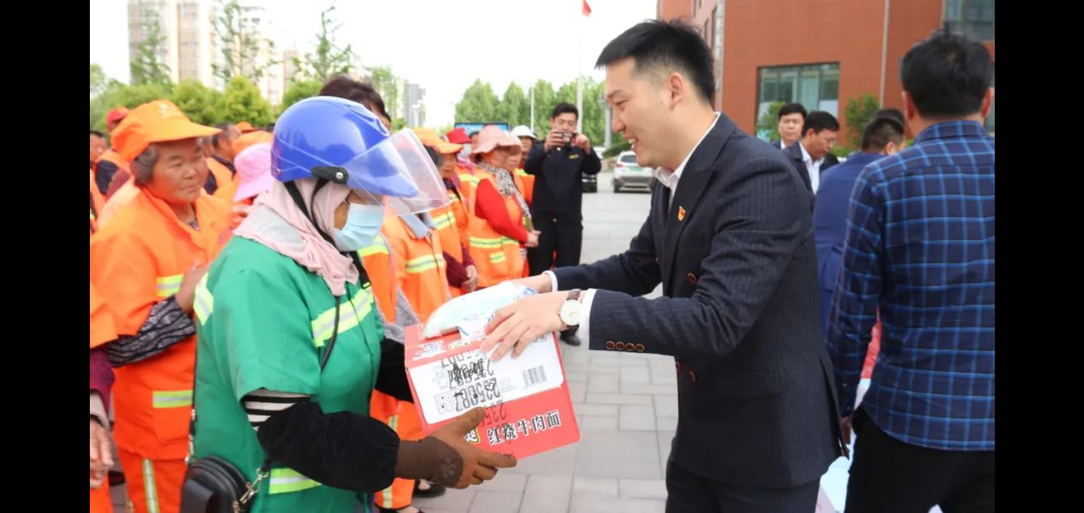 為表達(dá)對(duì)一線環(huán)衛(wèi)工人的關(guān)懷,致敬城市美容師,4月29日,中原眾恒集團(tuán)在道琚酒店組織開展五一勞動(dòng)節(jié)慰問(wèn)環(huán)衛(wèi)工人公益活動(dòng)。市城鄉(xiāng)一體化示范區(qū)綜合執(zhí)法中心副主任張英、王東方,中原眾恒集團(tuán)董事長(zhǎng)王文濤,副總經(jīng)理謝華、張輝,道琚酒店總經(jīng)理李陽(yáng)及示范區(qū)100余名環(huán)衛(wèi)工人參加活動(dòng)。