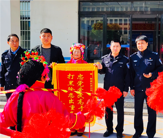 “忠黨愛民高于天,掃黑除惡出重拳。感謝你們神速破案,你們真是群眾的保護(hù)神?!?月1日,鄲城縣新城街道辦事處一電動車失主來到新城派出所,送來錦旗,感激地說。