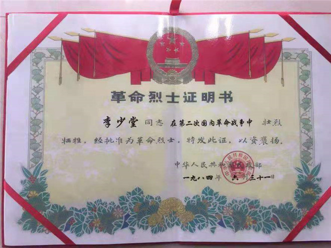 新中國(guó)成立后,李少堂的孫子才聯(lián)系上了李少堂曾經(jīng)的革命戰(zhàn)友惠浴宇同志。時(shí)任江蘇省省長(zhǎng)的惠浴宇同志得知消息后,親寫證明遞交黨中央,這才證實(shí)了李少堂的身份。
