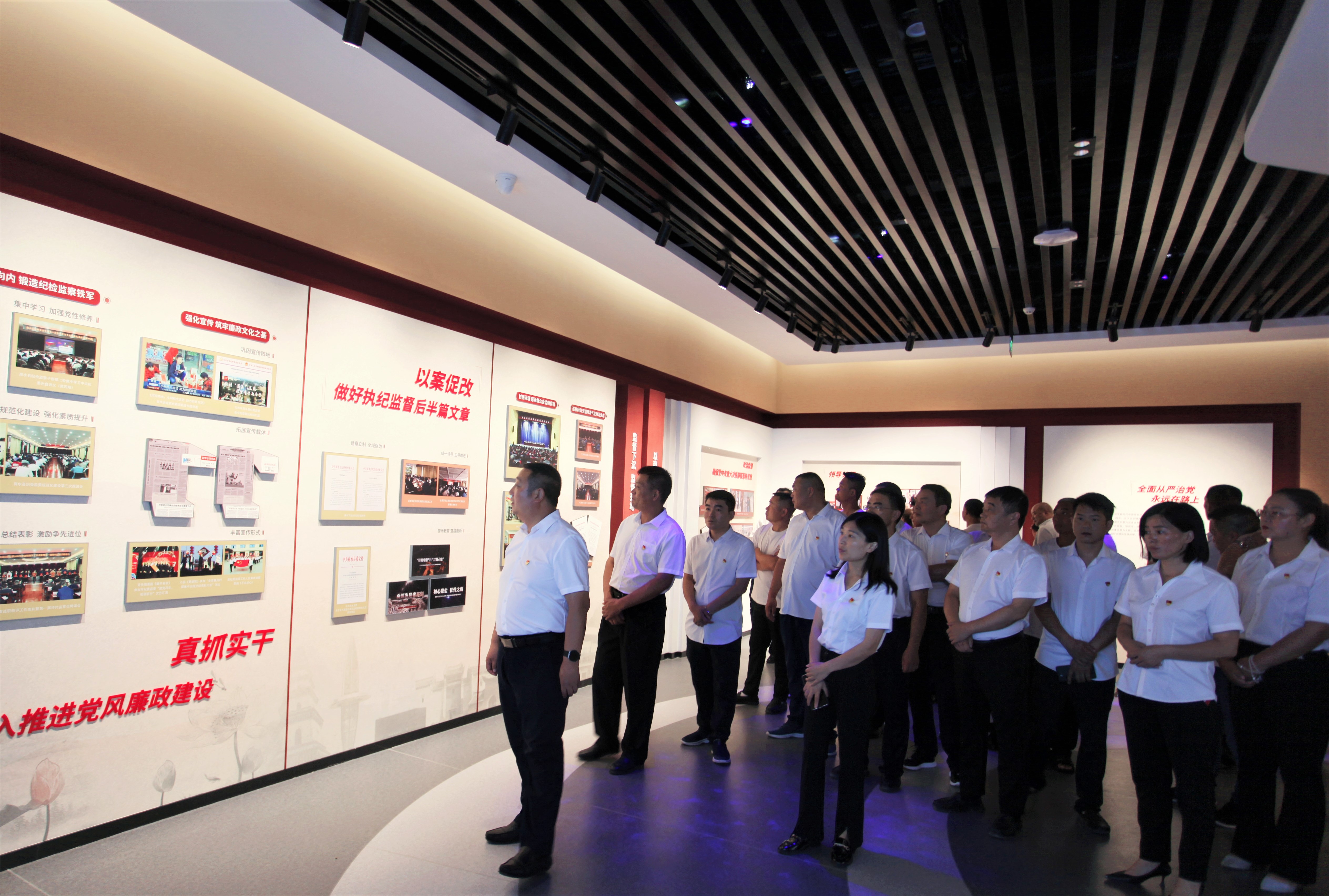 在講解員的帶領(lǐng)下,參觀人員認(rèn)真觀看了每一塊展板、每一張圖片、每一段視頻。廉政警示教育展廳內(nèi)綜合運用圖文、場景再現(xiàn)、互動體驗及多媒體聲光電等形式,從歷史的深度展示了中國共產(chǎn)黨歷次黨代會不斷加強(qiáng)紀(jì)律建設(shè)、全面從嚴(yán)治黨的偉大歷程,又展示了黨的十八大以來查處的各級領(lǐng)導(dǎo)干部嚴(yán)重違紀(jì)違法和群眾身邊的“微腐敗”案例等,將廉政文化教育、反面典型教育、理想信念教育結(jié)合在一起,形式多樣,內(nèi)容豐富,既有警示又受教育。