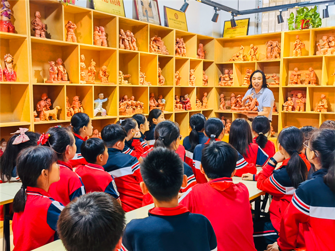 在舉國歡慶的國慶節(jié)期間,張振福鈞瓷泥塑藝術(shù)館迎來一批又一批來自周口市各縣市區(qū)的中小學(xué)生,他們前來參加社會學(xué)習(xí)實踐活動,感受河南省非物質(zhì)文化遺產(chǎn)——張振福泥塑藝術(shù)的魅力,讓身心受到民俗文化熏陶。