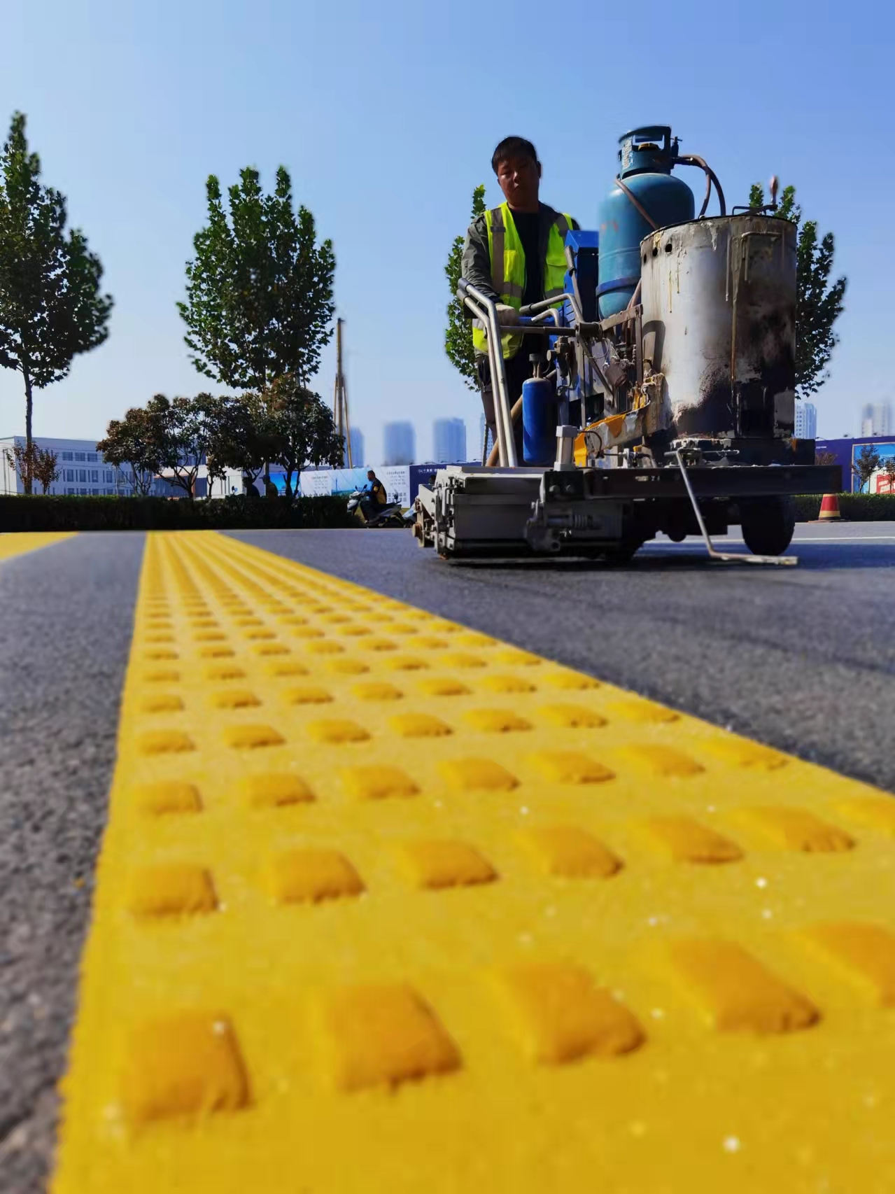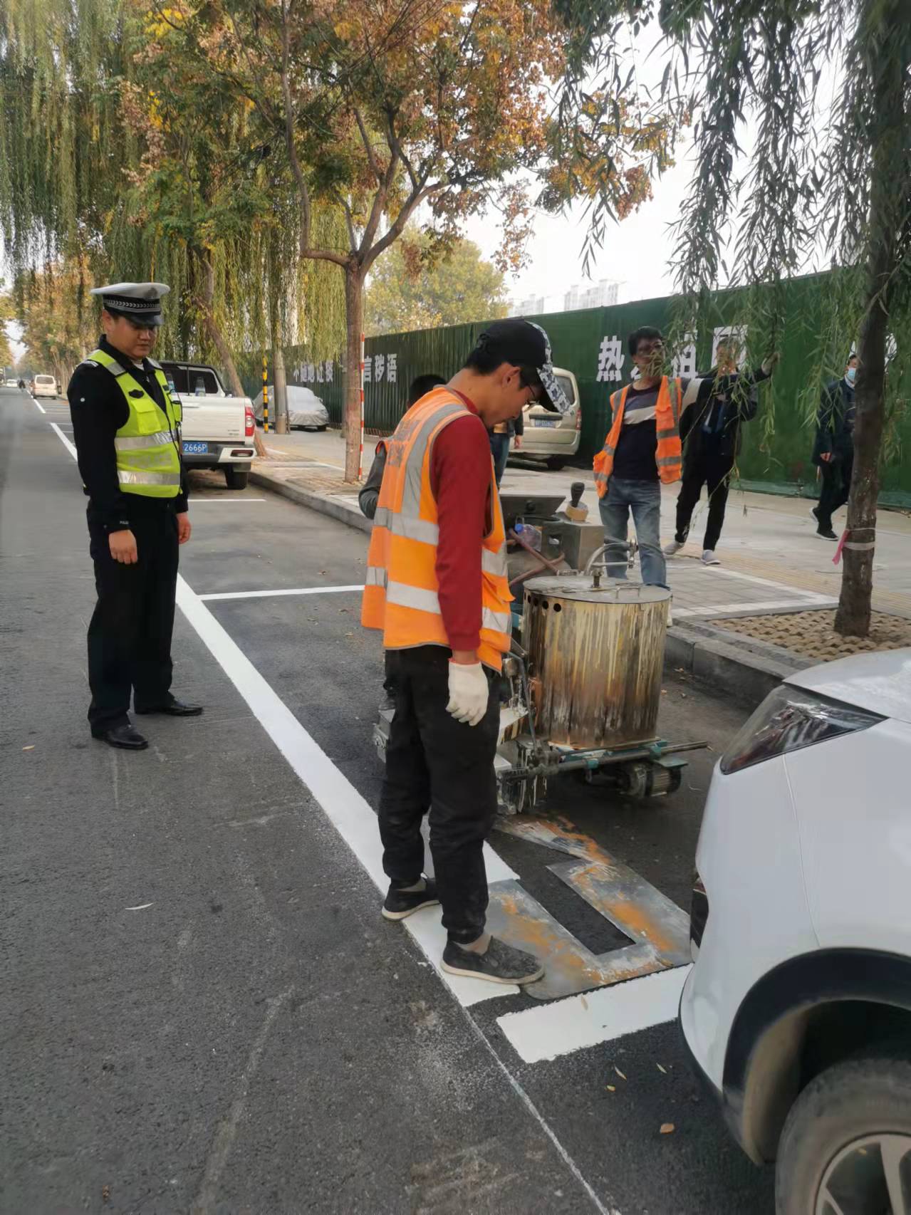 當(dāng)日下午,記者在黃河路看到,施工人員正在熟練地操作標(biāo)線機(jī),認(rèn)真細(xì)致地施劃減速震蕩標(biāo)線。市公安局交通管理支隊(duì)設(shè)施維護(hù)中心(以下簡稱設(shè)施維護(hù)中心)工作人員黃勇說:“在創(chuàng)文期間,設(shè)施維護(hù)中心加大對(duì)道路護(hù)欄的清洗力度,完善交通信號(hào)燈的維護(hù),清除學(xué)校門口不合理的停車位,修剪遮擋交通設(shè)施的樹枝,排除路口的交通隱患。”