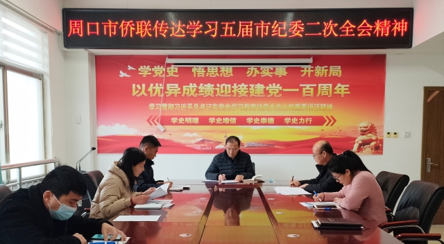 2月16日,周口市僑聯(lián)召開黨組(擴大)會議,傳達學(xué)習(xí)市委五屆二次全會暨市委經(jīng)濟工作會議精神,市僑聯(lián)黨組書記、主席馮連根主持會議。