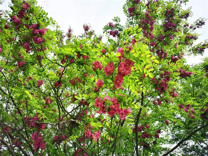 “槐林五月漾瓊花,郁郁芬芳醉萬家?!毖巯?,在周口濱河公園,紅色的槐花怒放,芳香四溢,惹人心醉。陽光下,一串串、一簇簇、一樹樹槐花隨風搖曳,美不勝收。周口日報·周道客戶端記者 普淑娟 攝