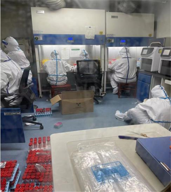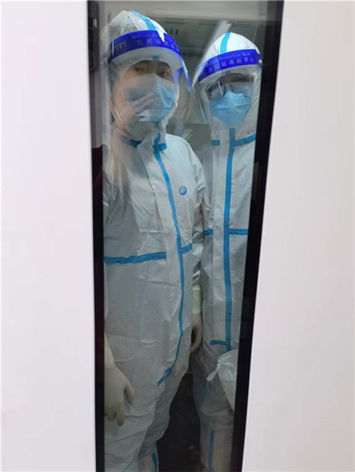 如果說有一座城叫眾志成城,那必定有一種力量叫檢驗擔當。在幾十平方米的實驗室內,環(huán)境消毒、物資準備、接收標本、編號錄入、核酸提取、環(huán)境消殺、基因擴增、結果研判、高壓消毒、信息上報、表格填寫、室內質控、室間質評……每一個環(huán)節(jié)都需要嚴格規(guī)范操作,不放過任何一個細節(jié)、不能有一絲毫紕漏。在核酸檢測過程中,王健嚴格遵守生物安全制度,標準穿戴三級防護裝備,帽子、N95口罩、防護服、護目鏡、乳膠手套、隔離衣……一個也不能少。為以最快速度出具檢測結果,確保實驗室安全,王健在低于標準大氣壓的負壓狀態(tài)下進行工作。三級防護和大量檢測工作時常會使他出現(xiàn)汗流浹背、呼吸不暢、頭痛等缺氧癥狀,對體力是一個極大挑戰(zhàn)。但他總能克服這些困難,不辜負黨和人民的期望,在抗擊新冠肺炎疫情的戰(zhàn)場上勇?lián)姑_鋒在前,為人民群眾筑起生命健康的第一道防線!